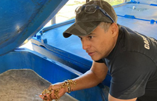 モンテ・ロウルデス農園で収穫された完熟果実をシュマバ・マイクロミル(精製所)で精製しています。シュマバ・マイクロミルは、2013年よりフランシスコ・メナ氏が代表マネージメントを行っています。